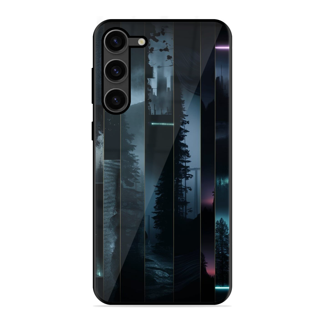 Tempered Glass Coated Metal Back Case for Samsung Galaxy S23 Plus 5G Stripped City