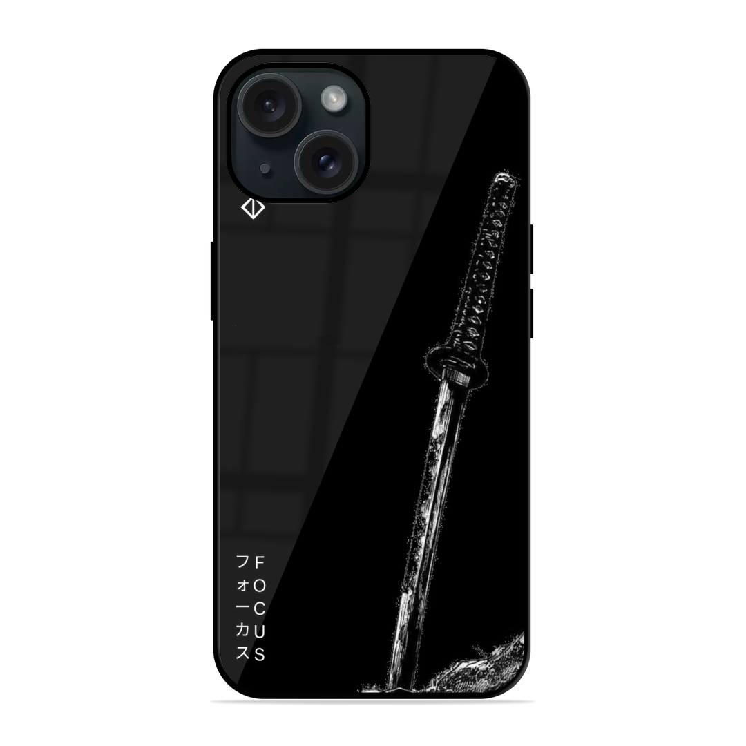 Tempered Glass Coated Metal Back Case for Apple Iphone 15 Sword Of Victory