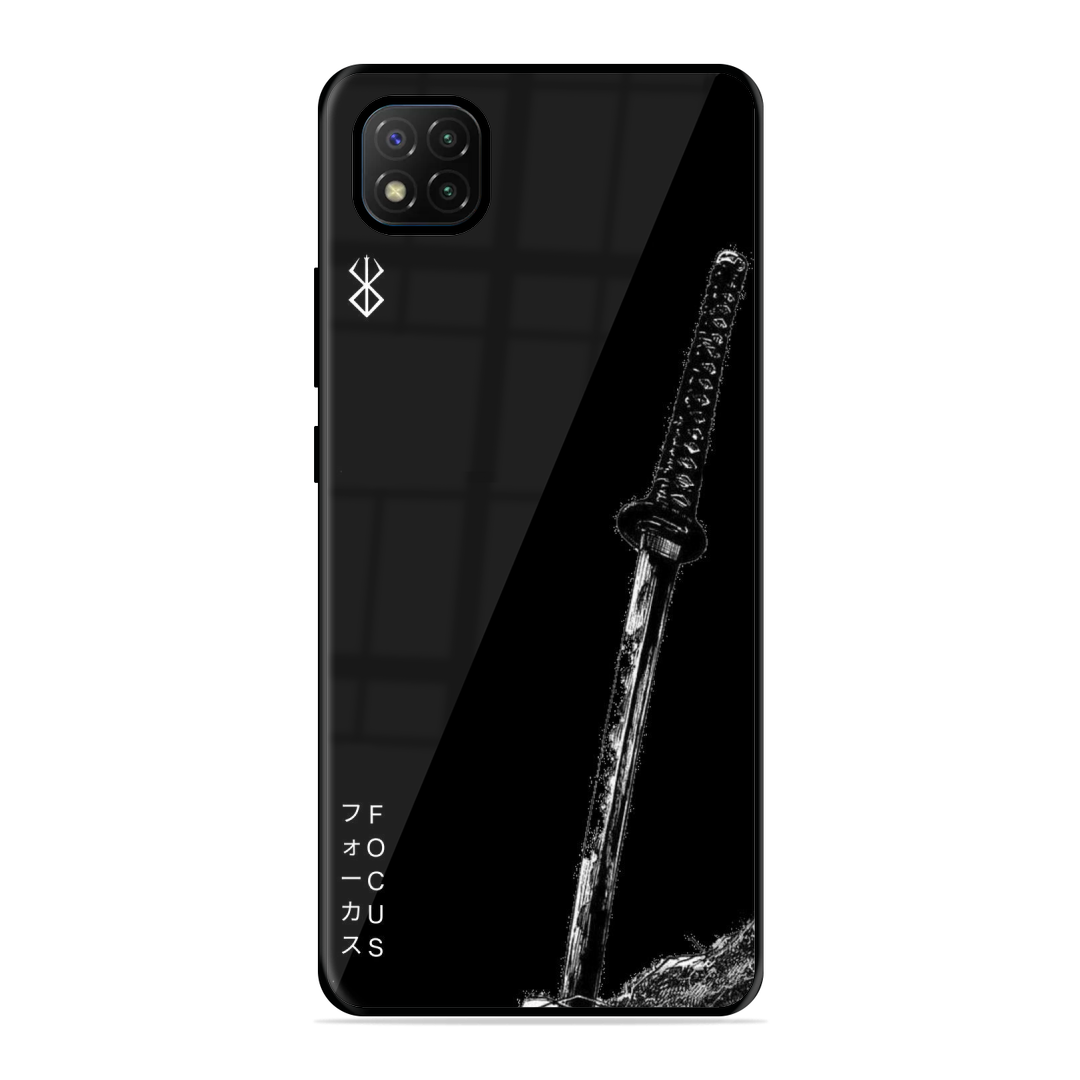 Tempered Glass Coated Metal Back Case for Poco C3 Sword Of Victory