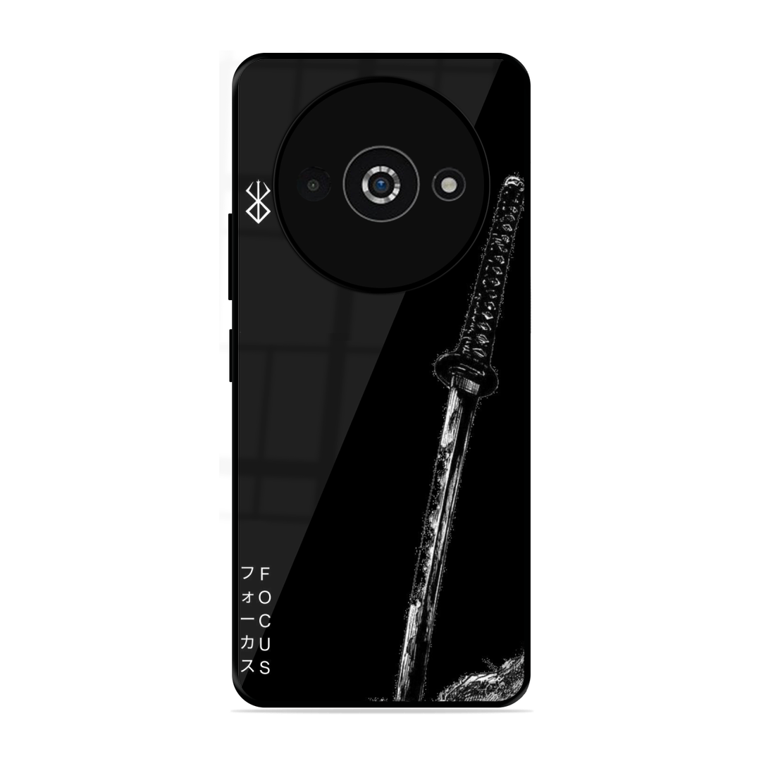 Tempered Glass Coated Metal Back Case for Poco C61 Sword Of Victory