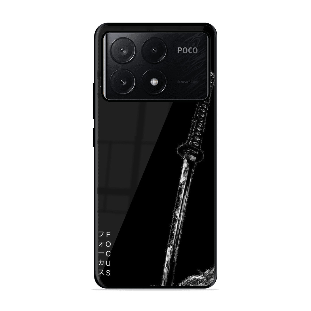 Tempered Glass Coated Metal Back Case for Poco X6 Pro 5G Sword Of Victory