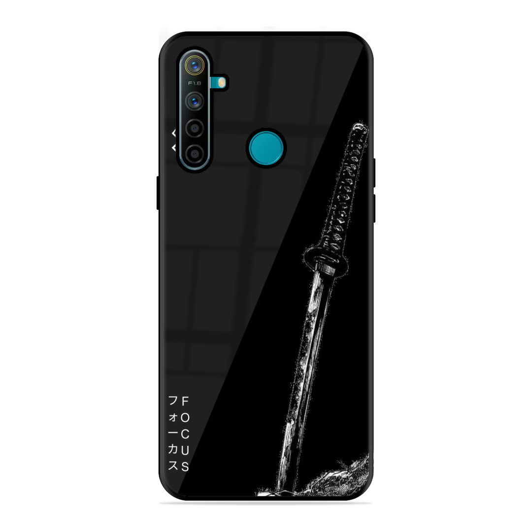 Tempered Glass Coated Metal Back Case for Realme 5I Sword Of Victory