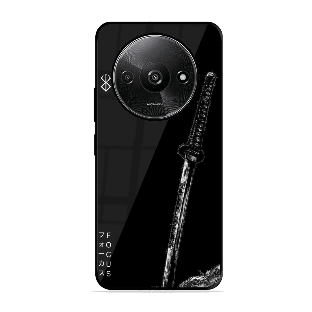 Tempered Glass Coated Metal Back Case for Xiaomi Redmi A3 2024 Sword Of Victory