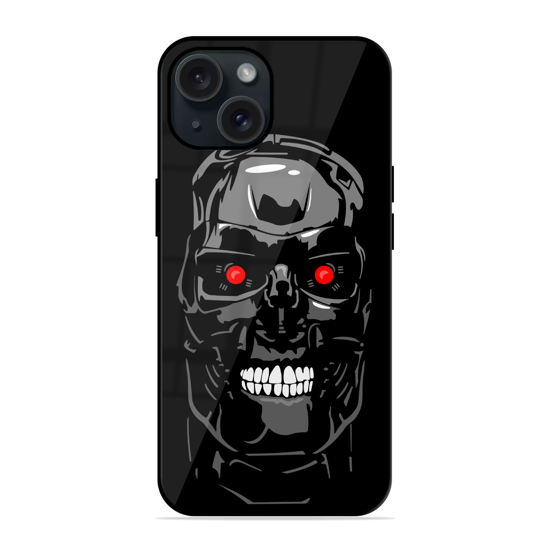 Tempered Glass Coated Metal Back Case for Apple Iphone 15 Terminator Boss