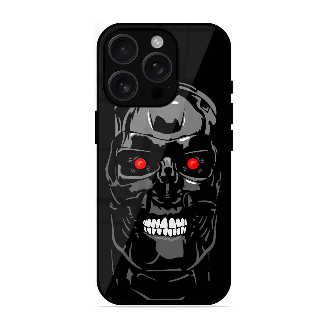 Tempered Glass Coated Metal Back Case for Apple Iphone 16 Pro Max Terminator Boss