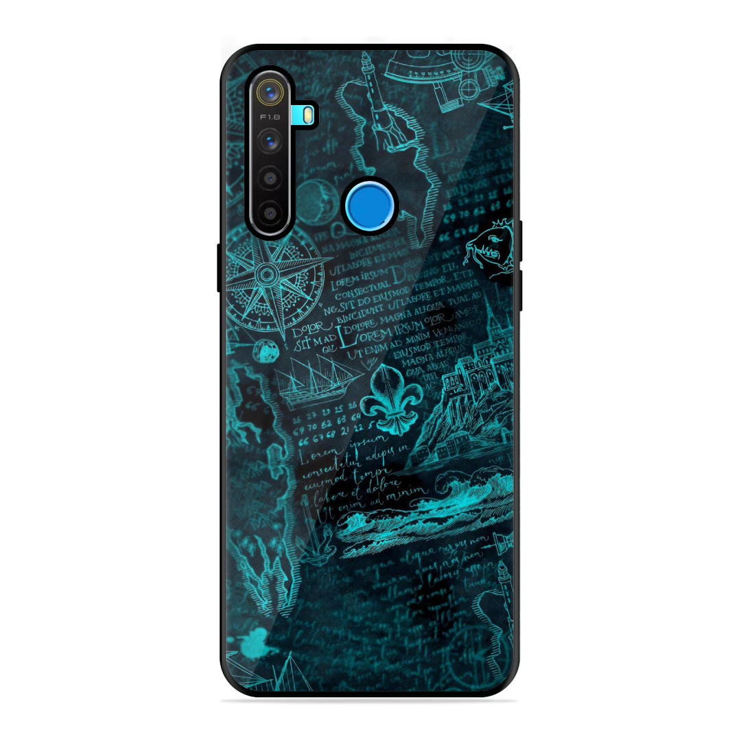 Tempered Glass Coated Metal Back Case for Realme 5 The Ancient Mystry