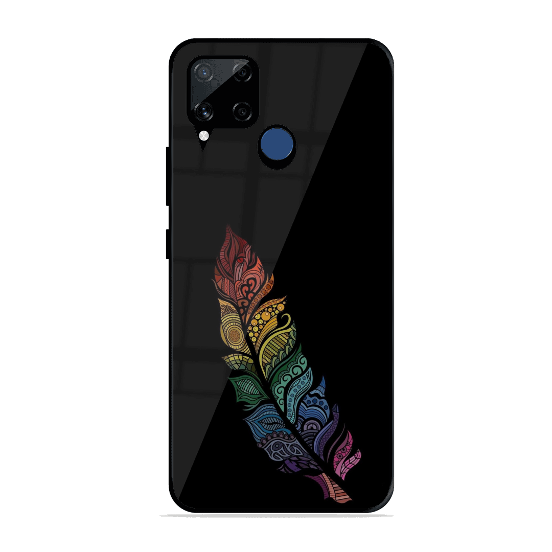 Introducing the ultimate fusion of bold design and rugged protection: the Tempered Glass Coated Metal Back Case for {brand} Realme C15 The Fortune Feather. Thoughtfully crafted for those who demand both high performance and high style, this premium case redefines mobile protection with a stunning, custom twist.