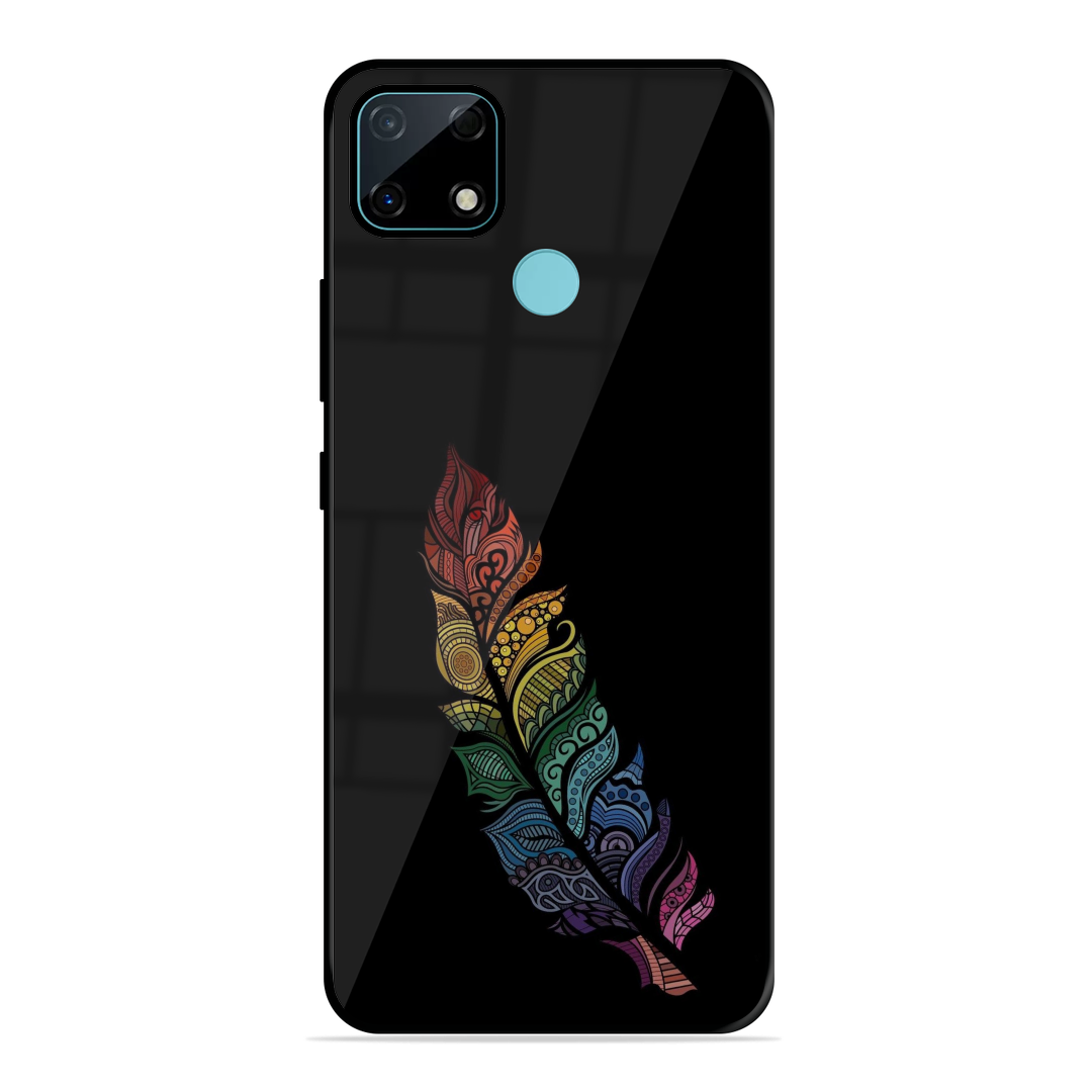 Tempered Glass Coated Metal Back Case for Realme Narzo 30A The Fortune Feather