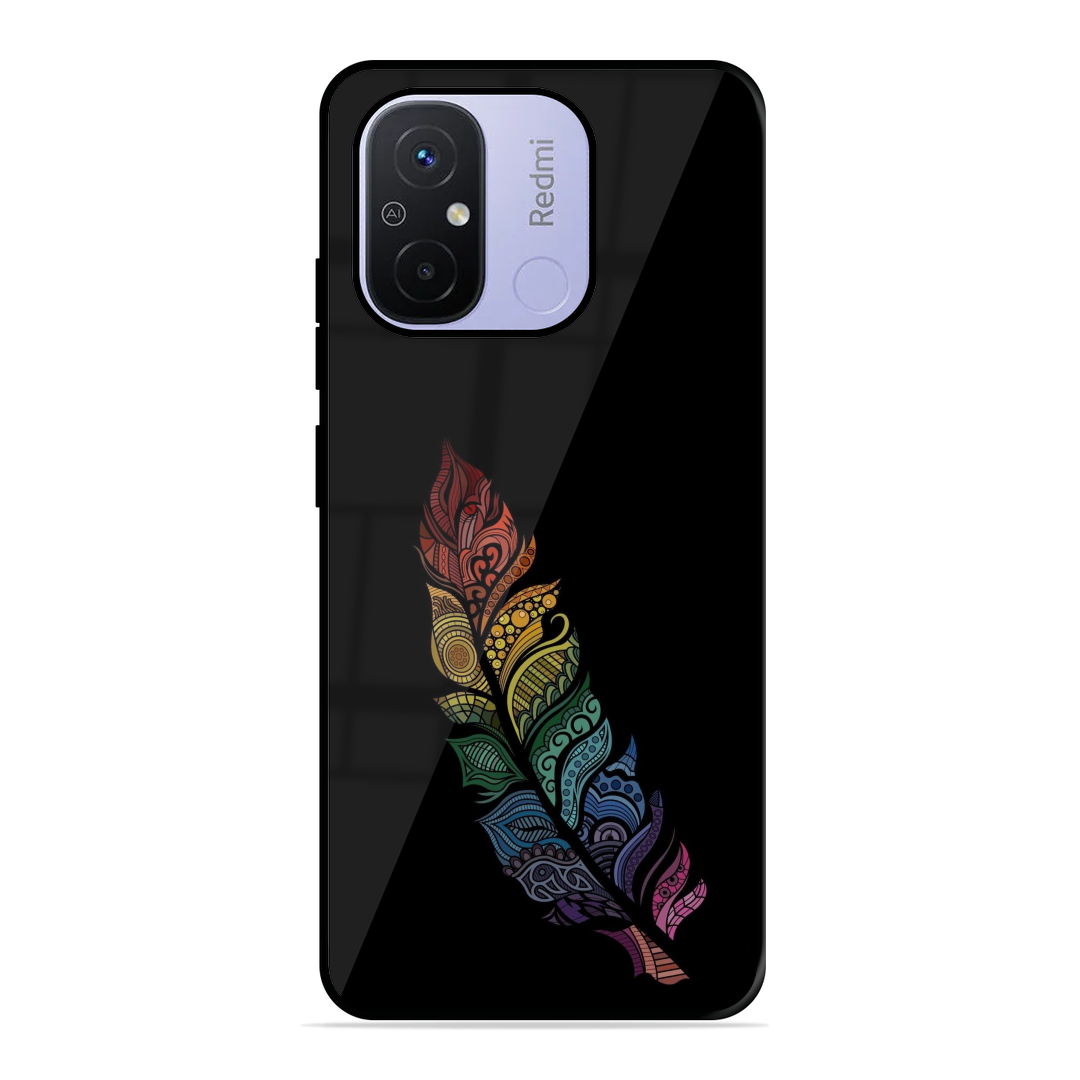 Tempered Glass Coated Metal Back Case for Xiaomi Redmi 12C The Fortune Feather