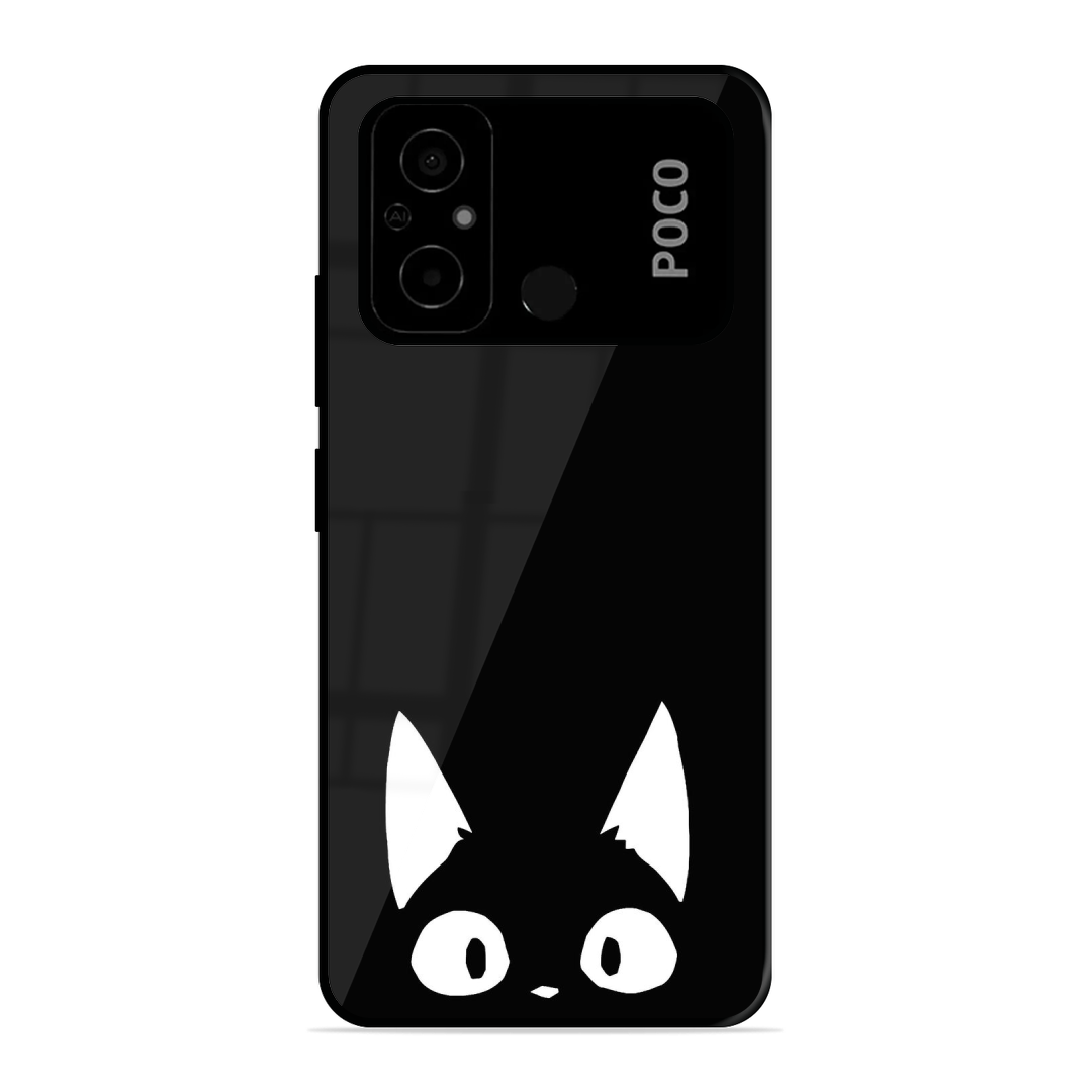 Tempered Glass Coated Metal Back Case for Poco C55 The Kitty