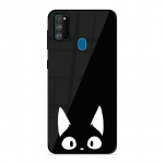 Tempered Glass Coated Metal Back Case for Samsung Galaxy M21 4G The Kitty
