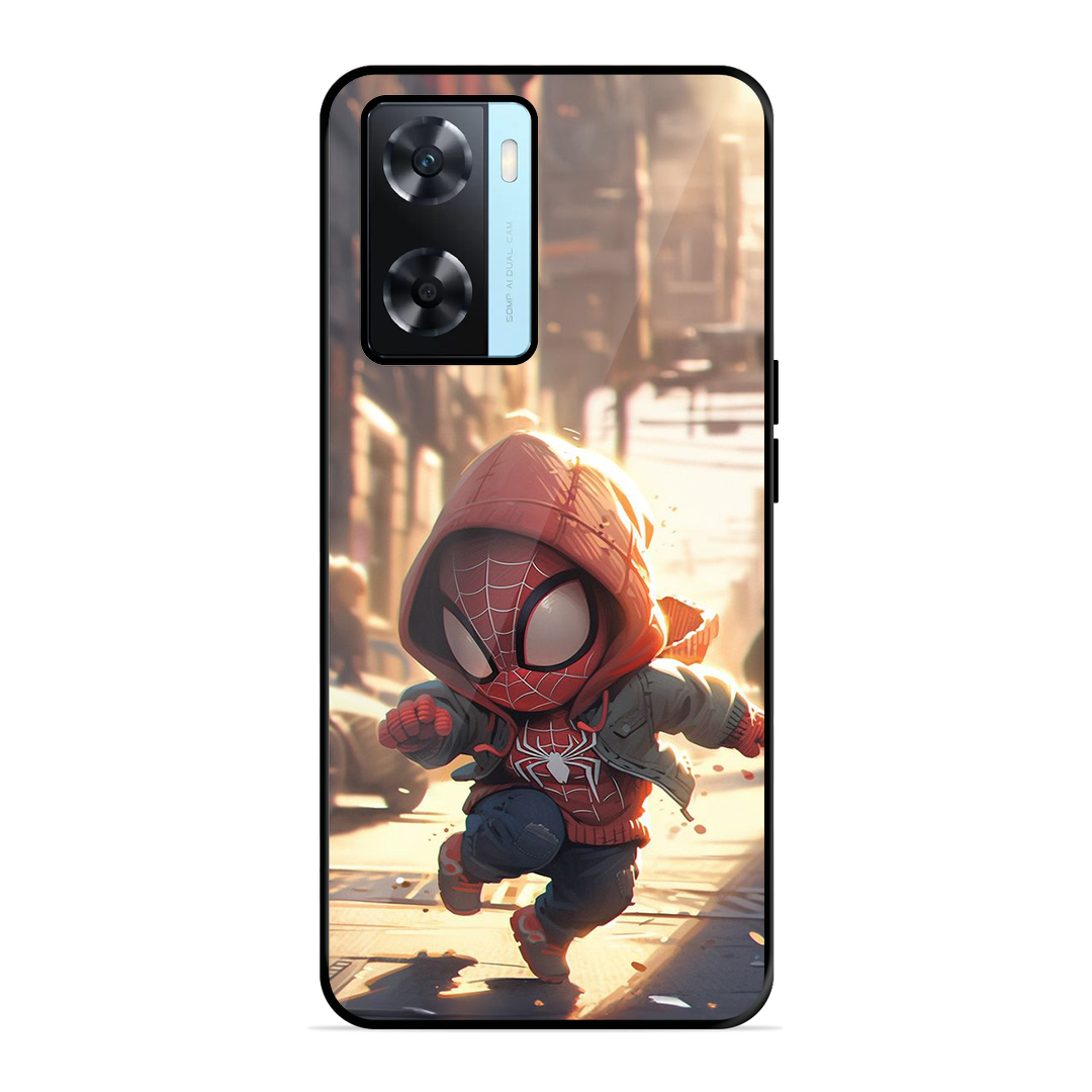 Introducing the ultimate fusion of bold design and rugged protection: the Tempered Glass Coated Metal Back Case for {brand} Oppo A77S The Little Spidy. Thoughtfully crafted for those who demand both high performance and high style, this premium case redefines mobile protection with a stunning, custom twist.