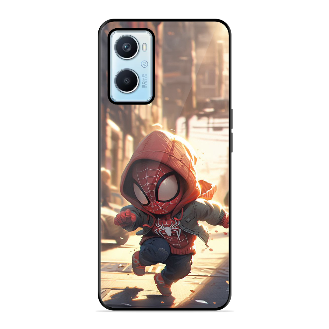 Tempered Glass Coated Metal Back Case for Oppo A96 The Little Spidy