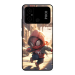 Tempered Glass Coated Metal Back Case for Poco C55 The Little Spidy