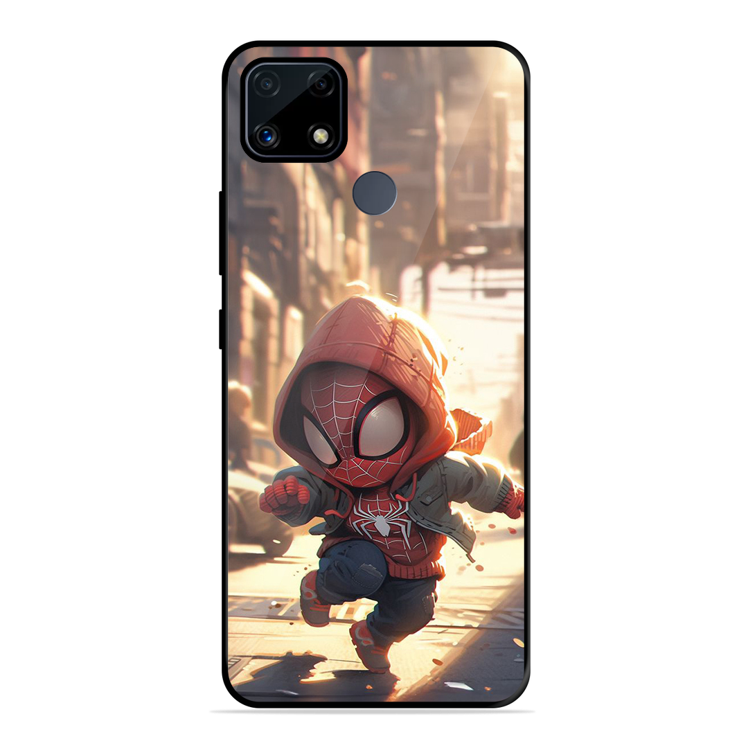 Tempered Glass Coated Metal Back Case for Realme C25S The Little Spidy