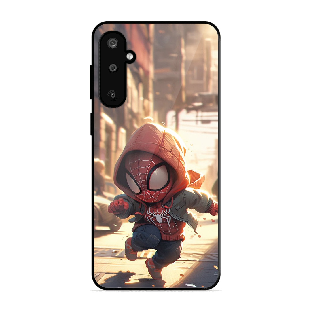 Introducing the ultimate fusion of bold design and rugged protection: the Tempered Glass Coated Metal Back Case for {brand} Samsung-Galaxy-M165G The Little Spidy. Thoughtfully crafted for those who demand both high performance and high style, this premium case redefines mobile protection with a stunning, custom twist.
