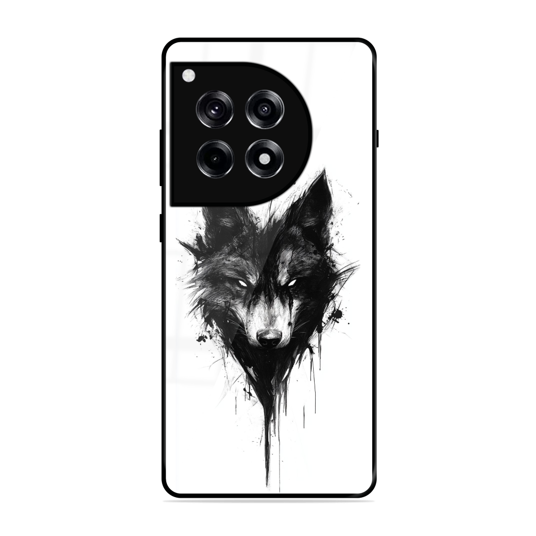 Tempered Glass Coated Metal Back Case for Oneplus 12R 5G The Mighty Wolf