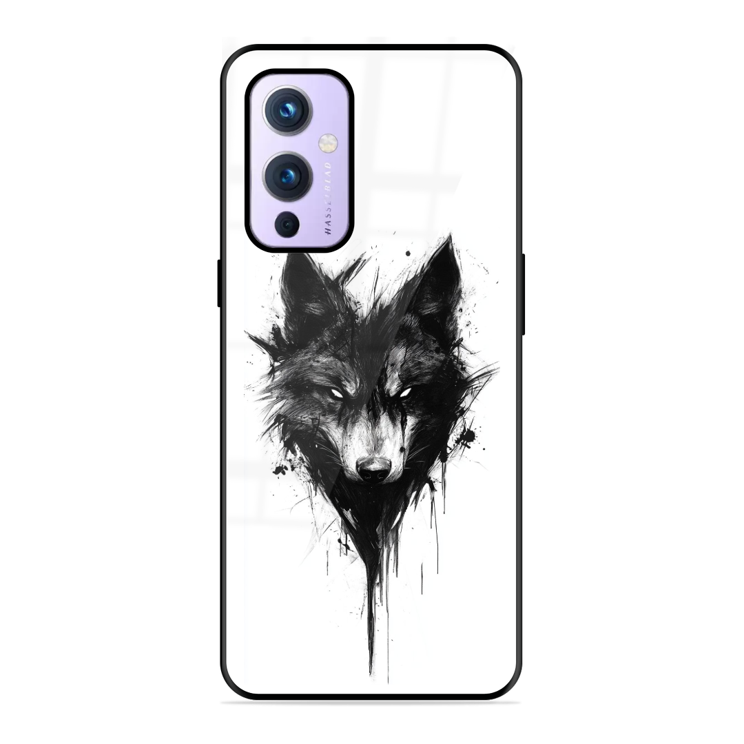 Tempered Glass Coated Metal Back Case for Oneplus 9 5G The Mighty Wolf