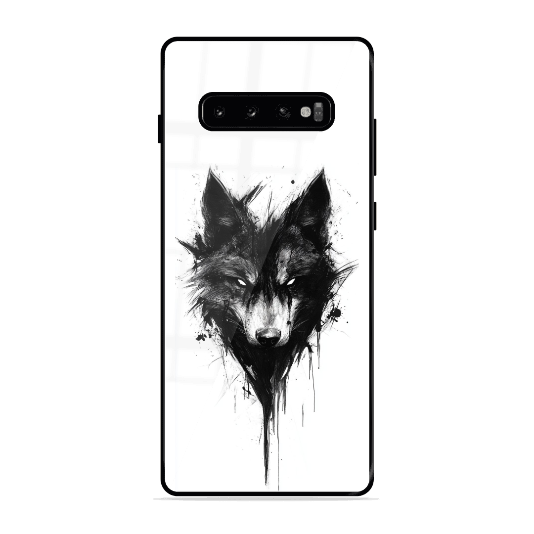 Tempered Glass Coated Metal Back Case for Samsung Galaxy S10 Plus The Mighty Wolf