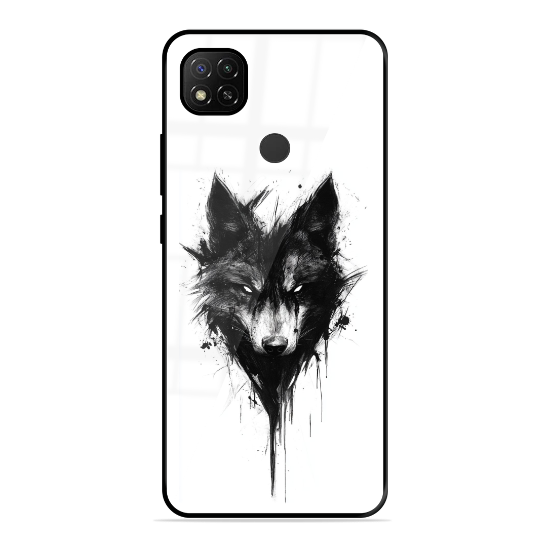 Tempered Glass Coated Metal Back Case for Xiaomi Redmi 9 The Mighty Wolf
