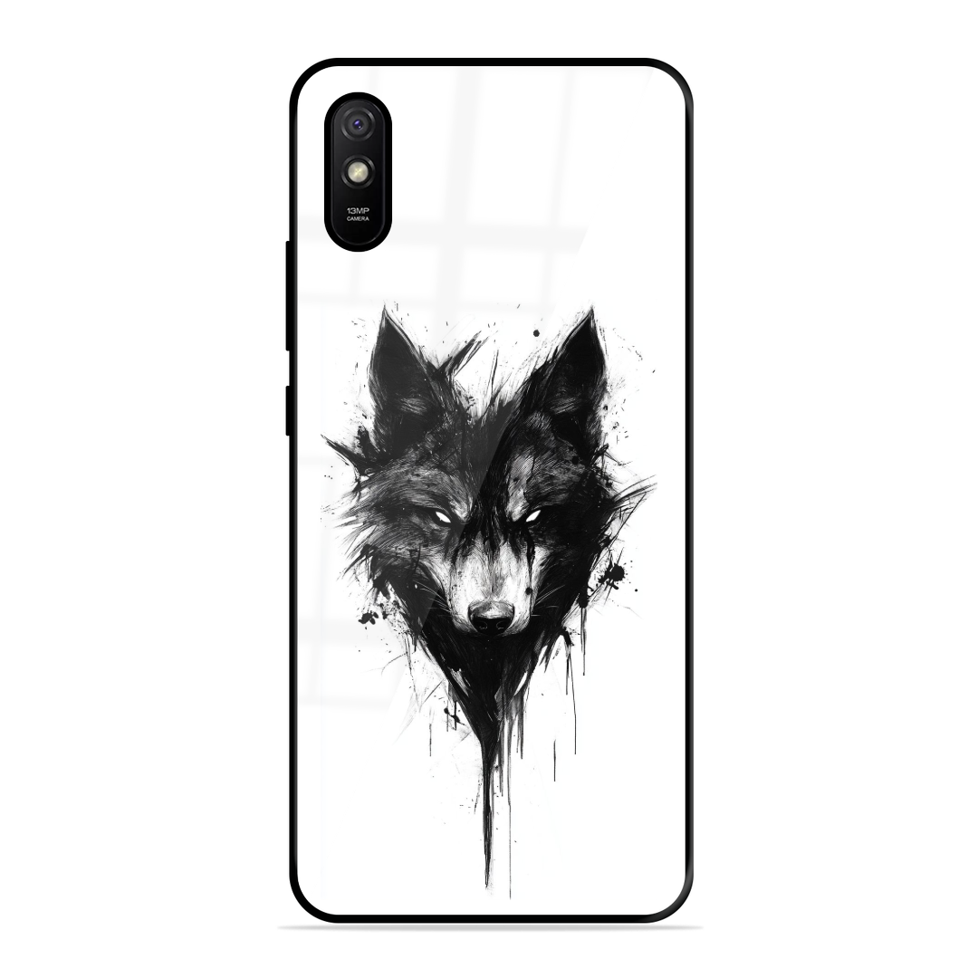 Tempered Glass Coated Metal Back Case for Xiaomi Redmi 9I The Mighty Wolf