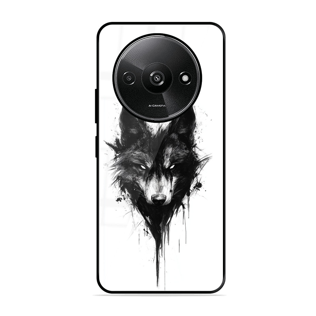 Tempered Glass Coated Metal Back Case for Xiaomi Redmi A3 2024 The Mighty Wolf