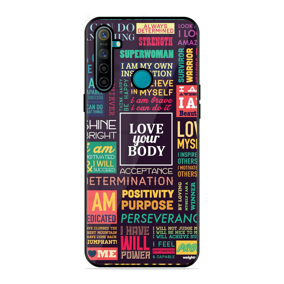 Tempered Glass Coated Metal Back Case for Realme 5I The Motivation