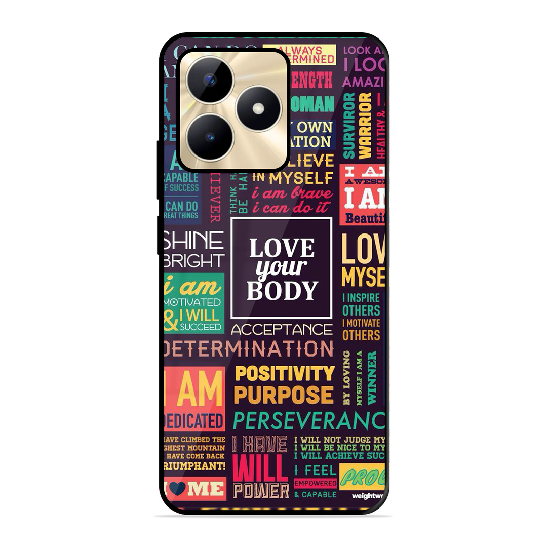 Tempered Glass Coated Metal Back Case for Realme C53 The Motivation