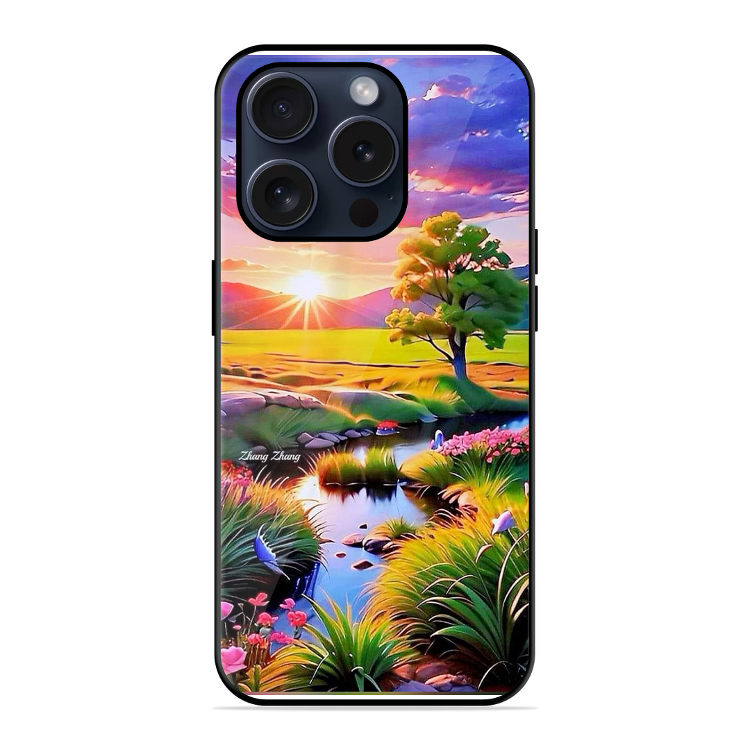 Tempered Glass Coated Metal Back Case for Apple Iphone 15 Pro The Mountain