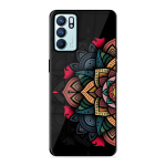 Tempered Glass Coated Metal Back Case for Oppo Reno 6 5G The Vector Flower