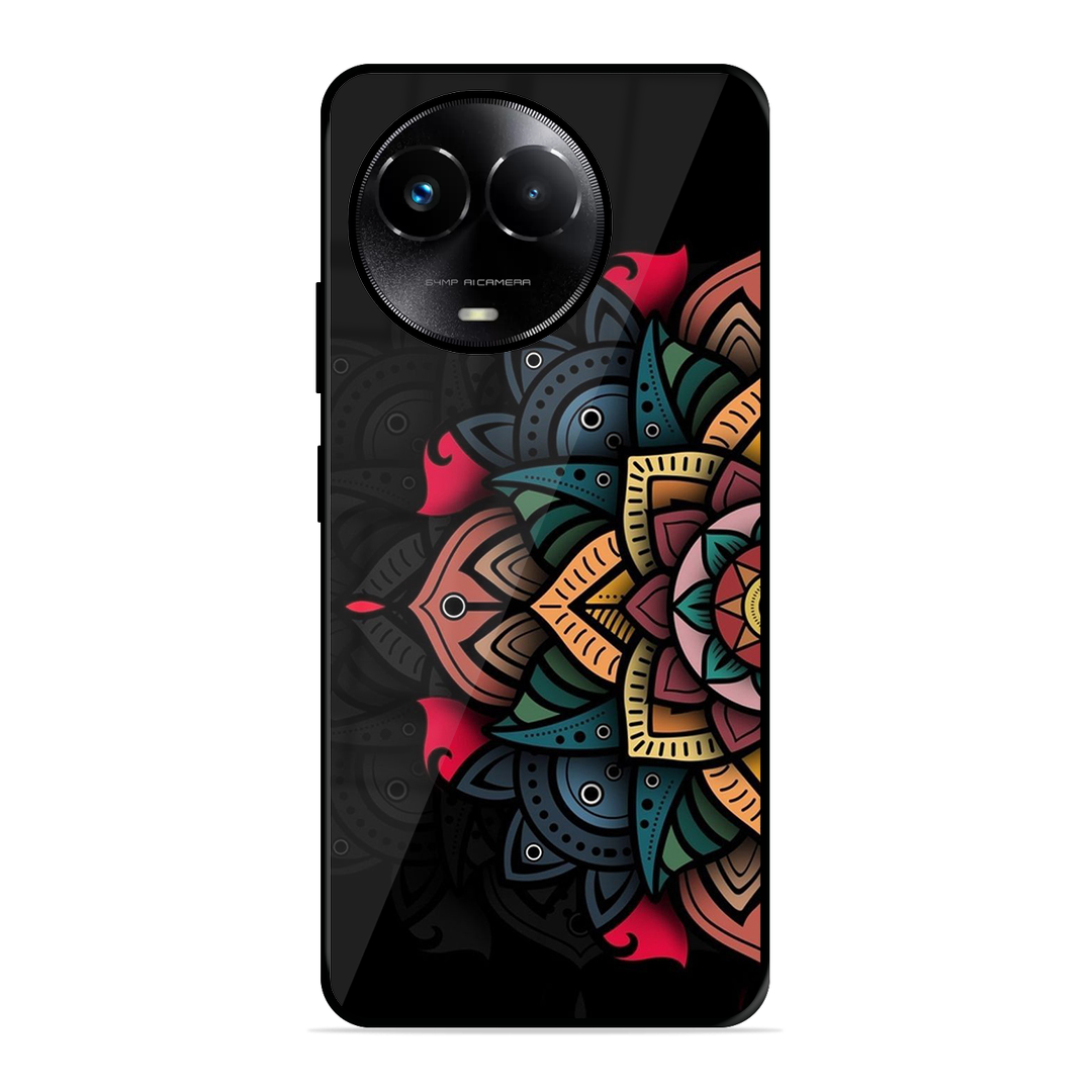 Tempered Glass Coated Metal Back Case for Realme 11X 5G The Vector Flower