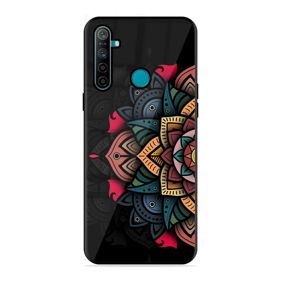 Tempered Glass Coated Metal Back Case for Realme 5I The Vector Flower