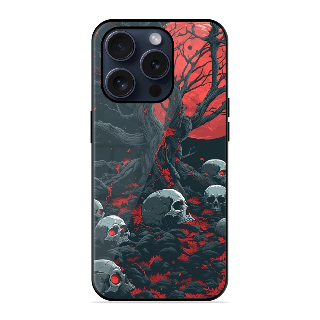 Tempered Glass Coated Metal Back Case for Apple Iphone 15 Pro Max Tree Of Death