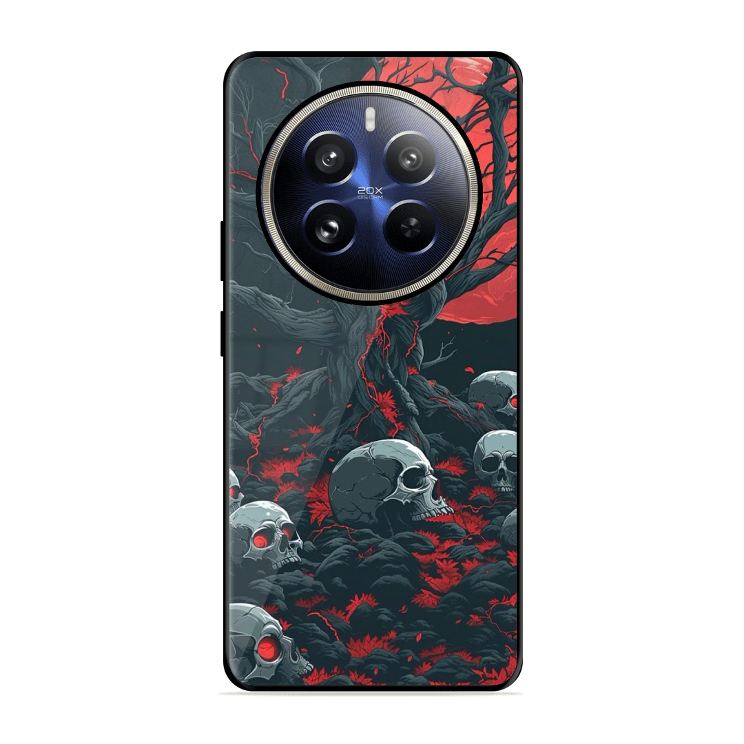 Introducing the ultimate fusion of bold design and rugged protection: the Tempered Glass Coated Metal Back Case for {brand} Realme 12 Pro 5G Tree Of Death. Thoughtfully crafted for those who demand both high performance and high style, this premium case redefines mobile protection with a stunning, custom twist.