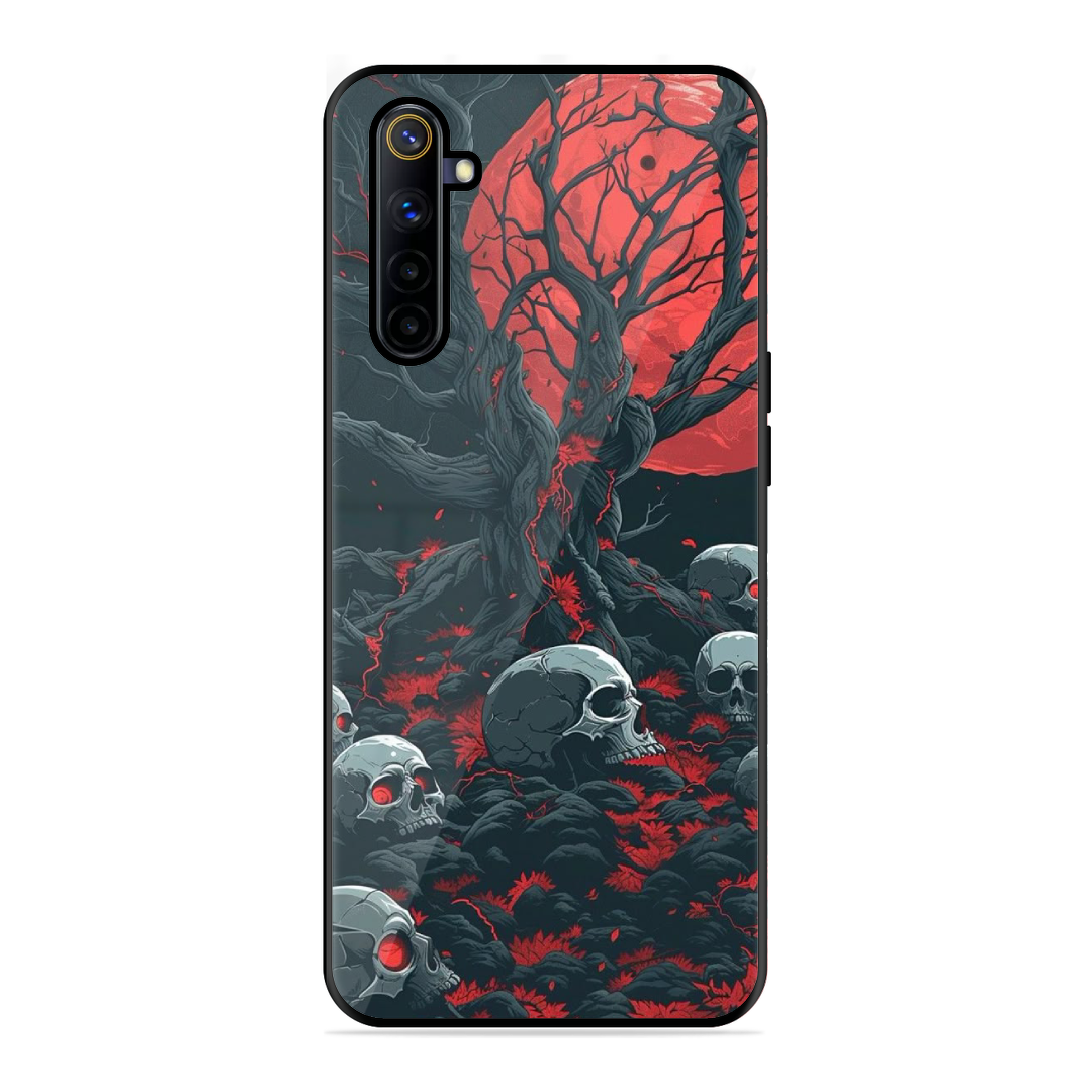 Introducing the ultimate fusion of bold design and rugged protection: the Tempered Glass Coated Metal Back Case for {brand} Realme 6I Tree Of Death. Thoughtfully crafted for those who demand both high performance and high style, this premium case redefines mobile protection with a stunning, custom twist.