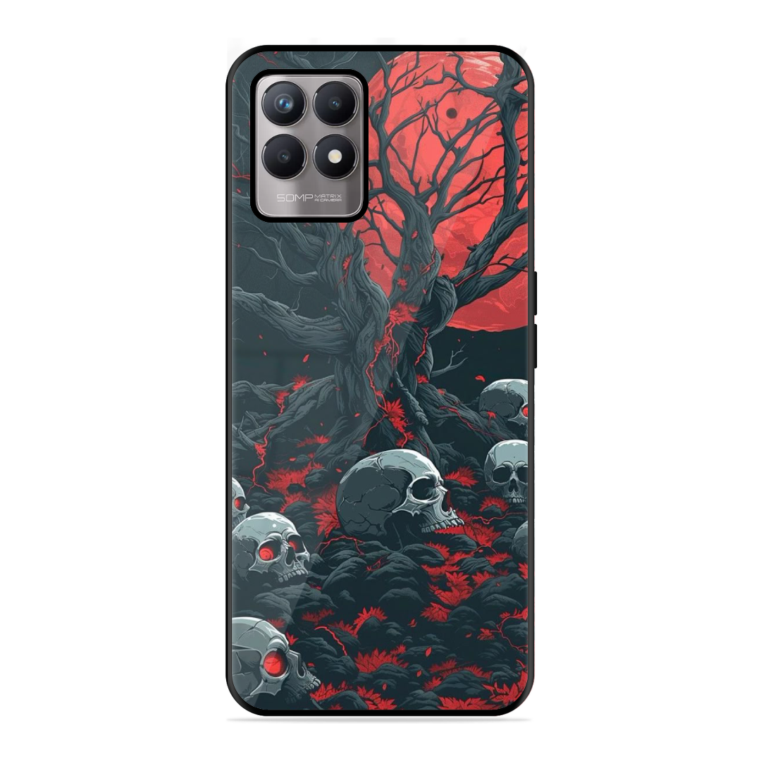Introducing the ultimate fusion of bold design and rugged protection: the Tempered Glass Coated Metal Back Case for {brand} Realme 8I Tree Of Death. Thoughtfully crafted for those who demand both high performance and high style, this premium case redefines mobile protection with a stunning, custom twist.