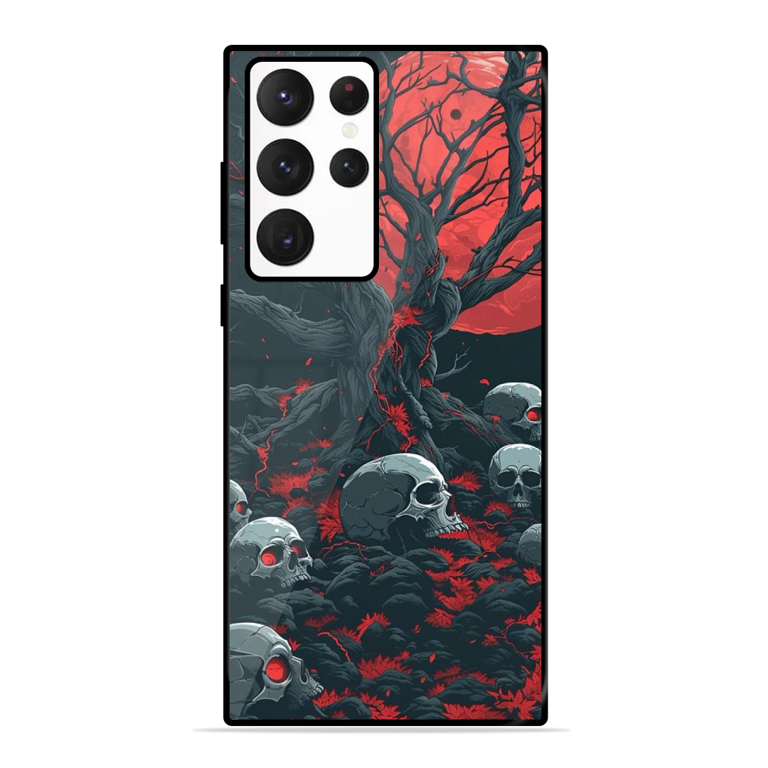 Introducing the ultimate fusion of bold design and rugged protection: the Tempered Glass Coated Metal Back Case for {brand} Samsung Galaxy S22 Ultra Tree Of Death. Thoughtfully crafted for those who demand both high performance and high style, this premium case redefines mobile protection with a stunning, custom twist.
