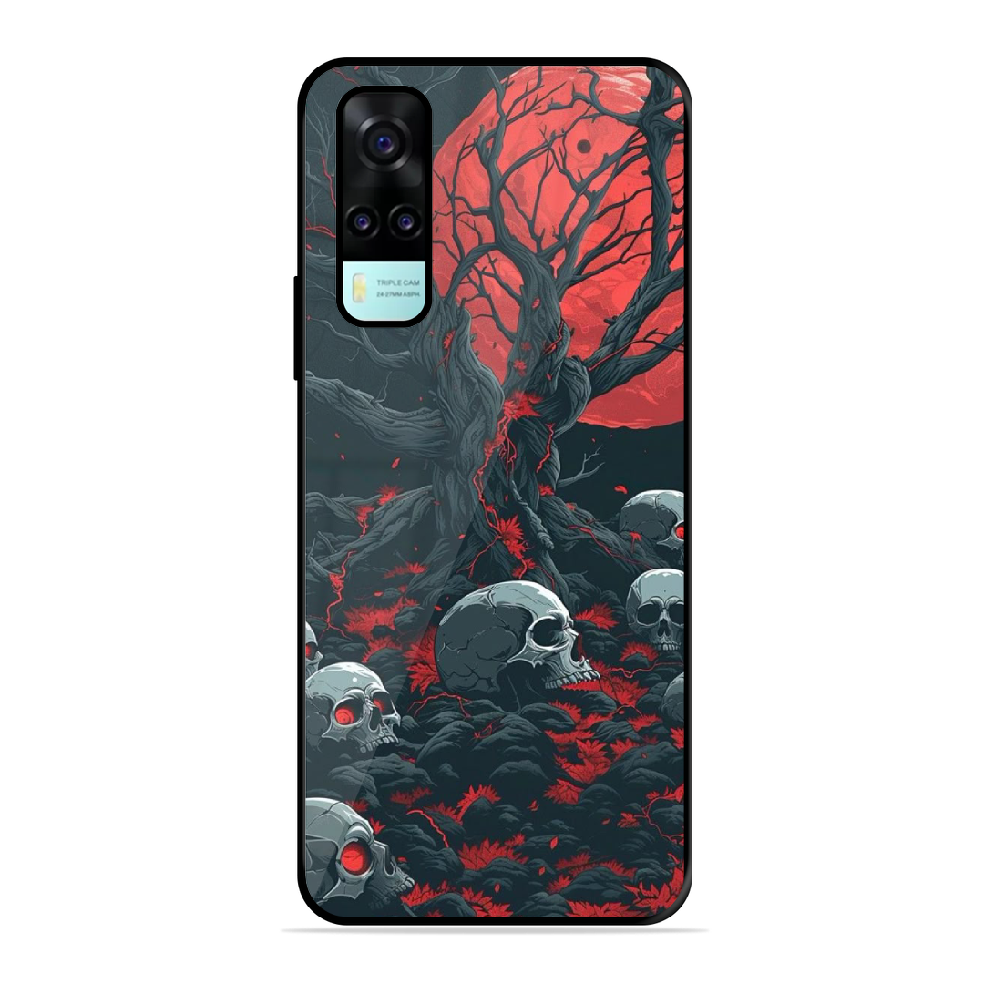 Introducing the ultimate fusion of bold design and rugged protection: the Tempered Glass Coated Metal Back Case for {brand} Vivo Y31 Tree Of Death. Thoughtfully crafted for those who demand both high performance and high style, this premium case redefines mobile protection with a stunning, custom twist.