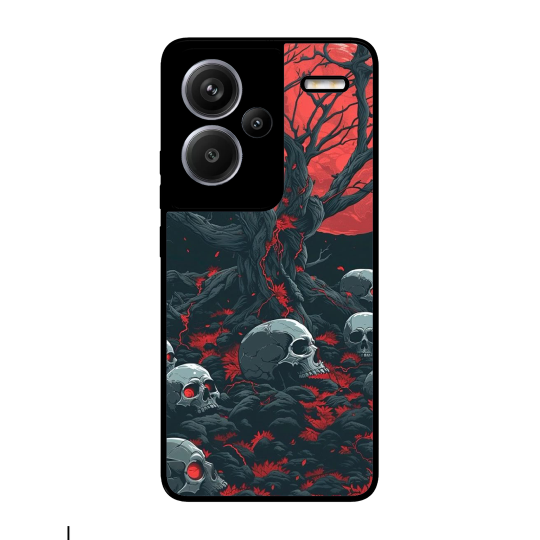 Introducing the ultimate fusion of bold design and rugged protection: the Tempered Glass Coated Metal Back Case for {brand} Xiaomi Redmi Note 13 Pro Plus 5G Tree Of Death. Thoughtfully crafted for those who demand both high performance and high style, this premium case redefines mobile protection with a stunning, custom twist.