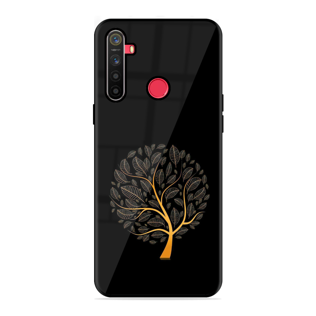 Tempered Glass Coated Metal Back Case for Realme 5S Tree Of Life