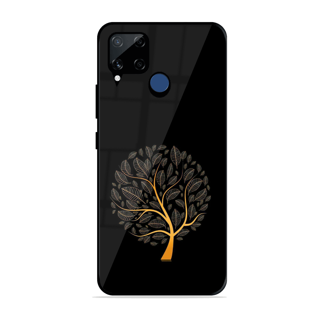 Tempered Glass Coated Metal Back Case for Realme C15 Tree Of Life