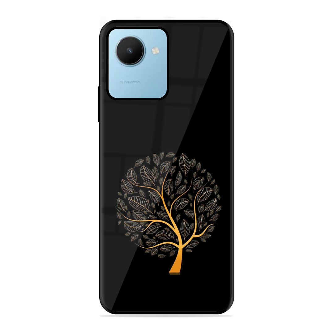 Tempered Glass Coated Metal Back Case for Realme C30S Tree Of Life