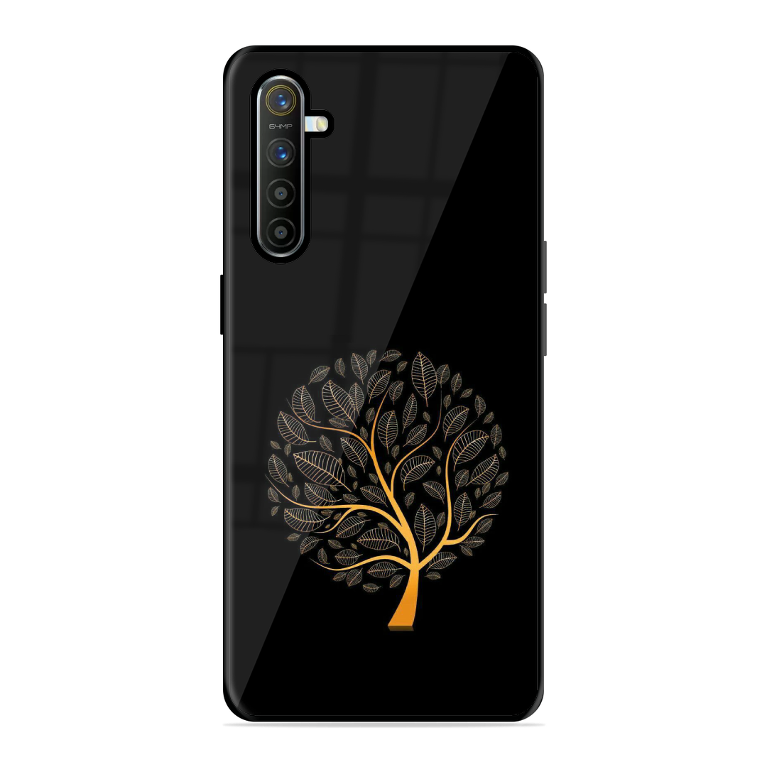 Tempered Glass Coated Metal Back Case for Realme Xt Tree Of Life