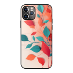 Tempered Glass Coated Metal Back Case for Apple Iphone 11 Pro Vibrant Leaves