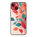 Tempered Glass Coated Metal Back Case for Apple Iphone 14 Vibrant Leaves