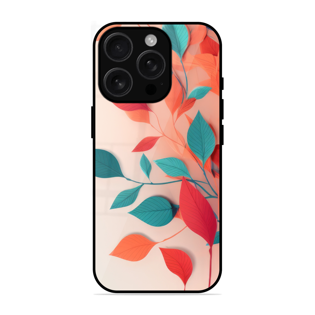 Tempered Glass Coated Metal Back Case for Apple Iphone 16 Pro Max Vibrant Leaves