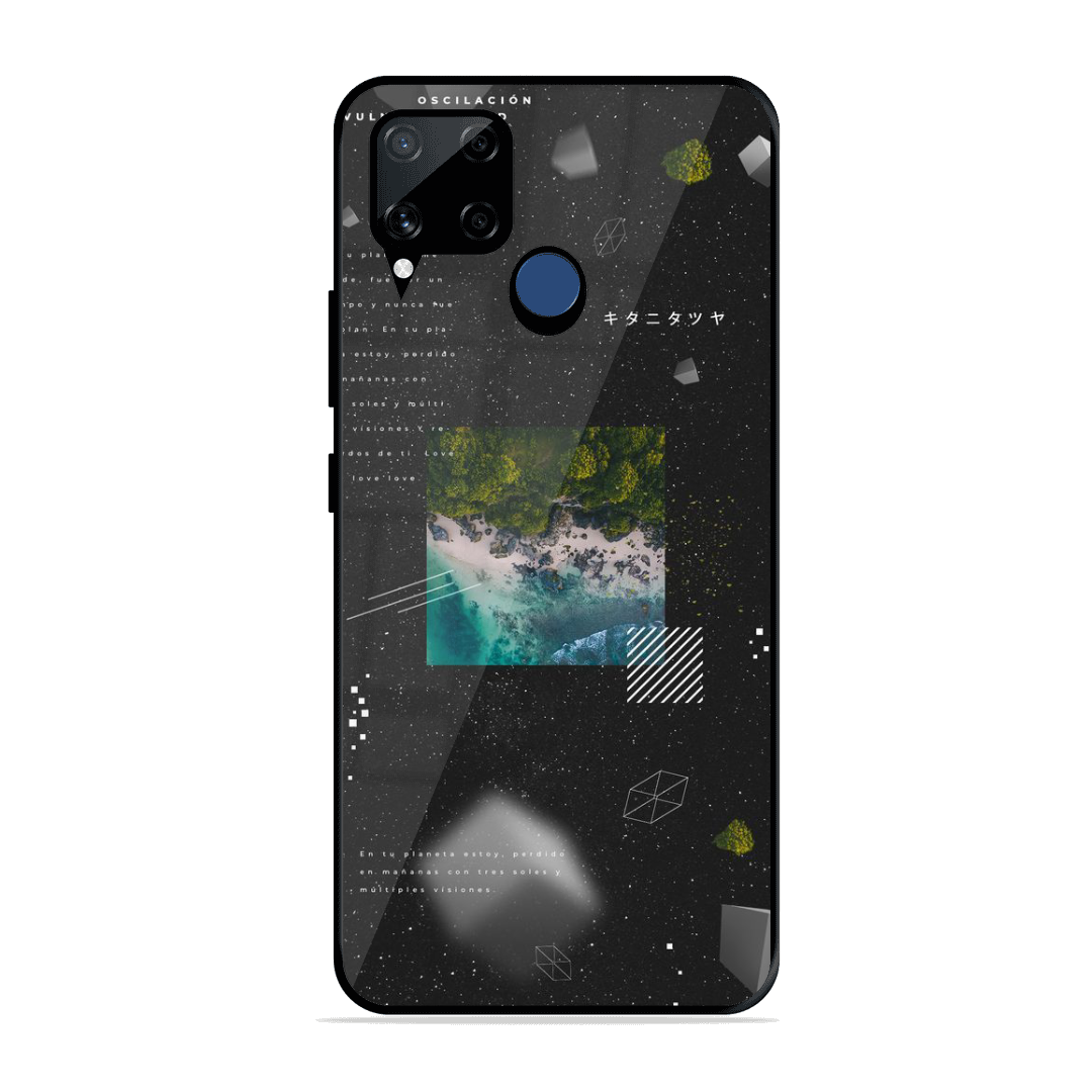Tempered Glass Coated Metal Back Case for Realme C15 Void Nature