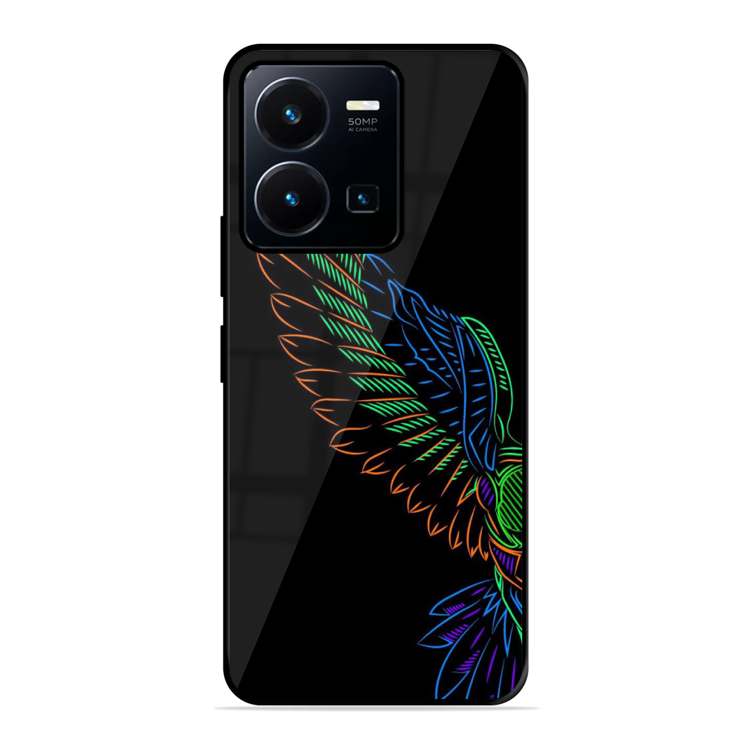 Tempered Glass Coated Metal Back Case for Vivo Y35 Wings Of Freedom